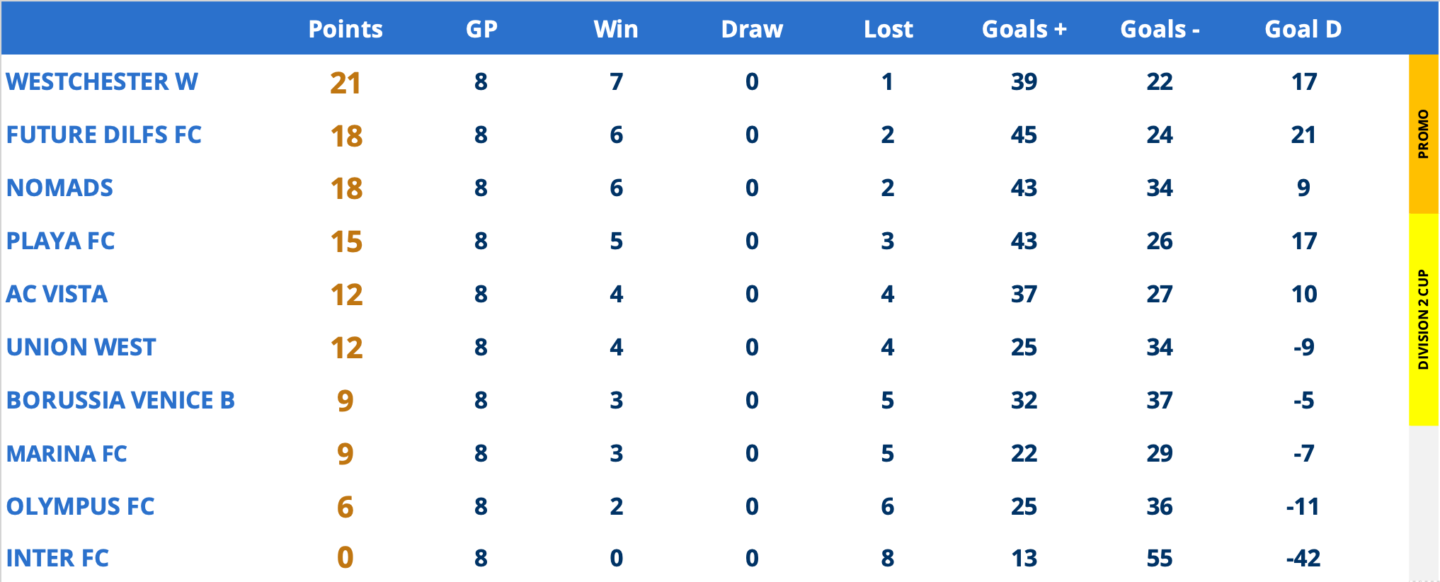 Division 2 Cup: Teams between 4th and 7th place from D2 (Saturday and Sunday) will play the Division 2 cup.